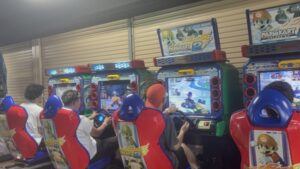 メンズ組は、パンチングマシーンで戦ったり、マリオカートをしたりしていました