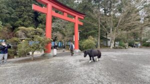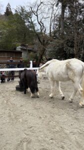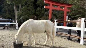 実際に馬のいる神社で、シロちゃん クロちゃん という名前の馬がお出迎えしてくれました