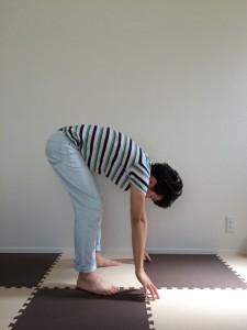 そして、息を吐きながら前に飛び込む勢いで前屈をします。