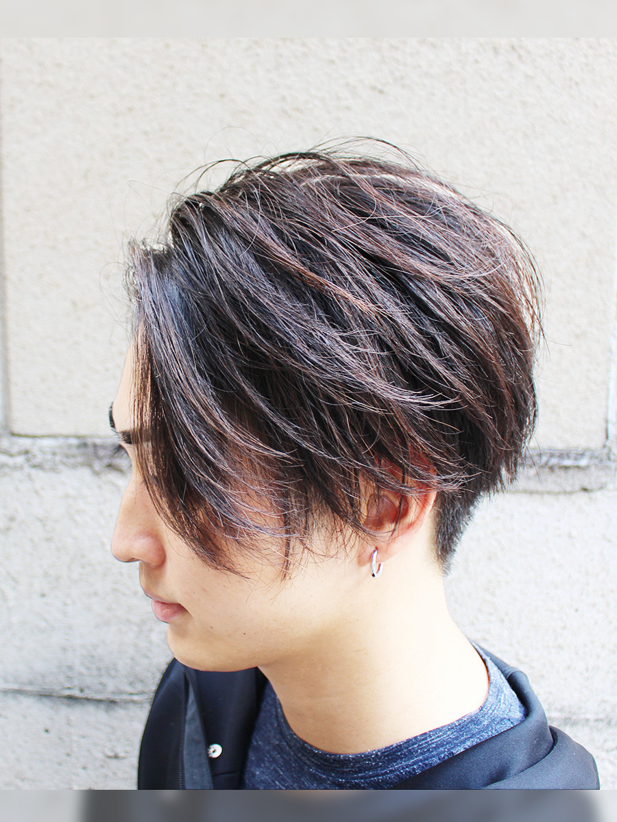 自然に決まるショートスタイルになっています。軽く柔らかめのワックスでスタイリングするのがオススメ。